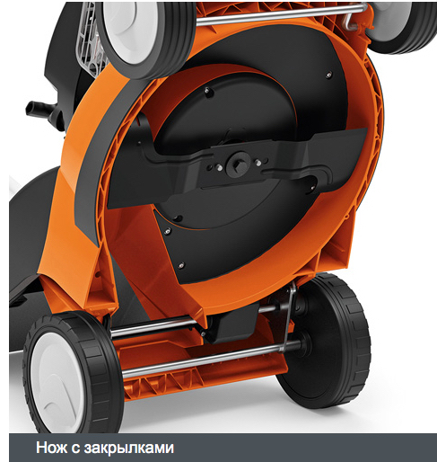 Эффективная работа. Нож с закрылками создает мощный воздушный поток, который поднимает траву перед скашиванием и задувает в травосборник.