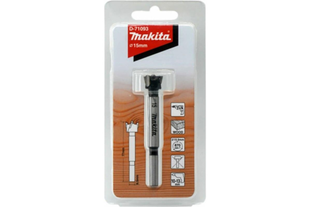 Сверло Форстнера STANDARD 15x77 мм Makita D-71093 подходит для сверления точных отверстий без разрывов в древесине мягких и твердых пород, ДСП и МДФ с покрытием.