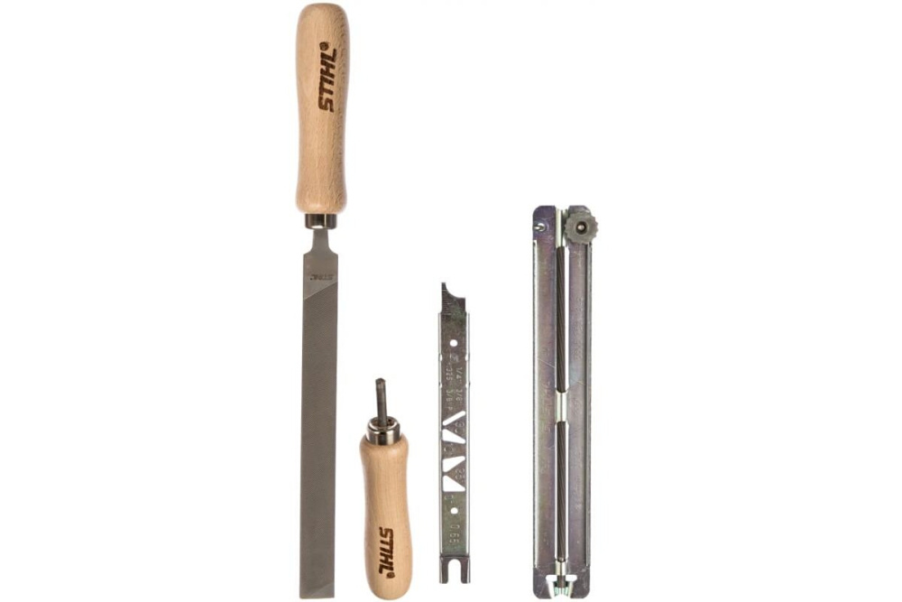 Заточной набор Stihl 56050071028 включает в себя все необходимое для заточки режущих зубьев и ограничителей глубины реза. Подходит для бытового использования.