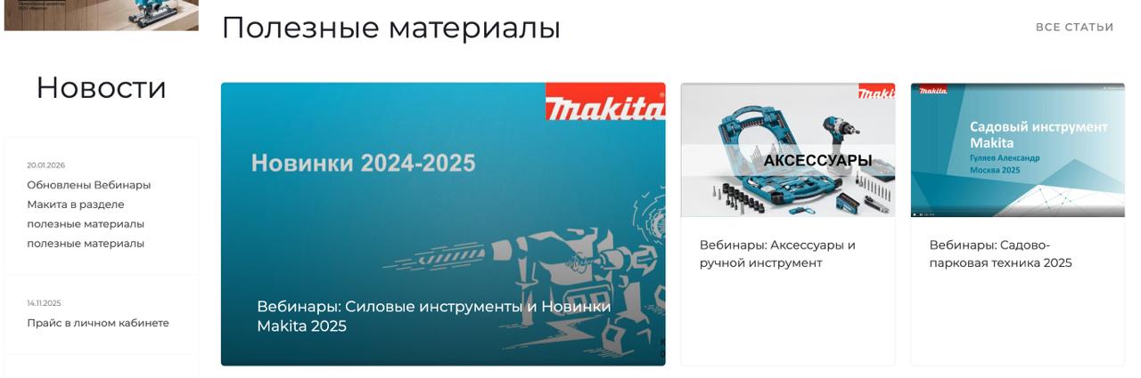 Уважаемые партнеры! Обновлен раздел полезные материалы. Туда добавлены все вебинары Макита за 2025 год